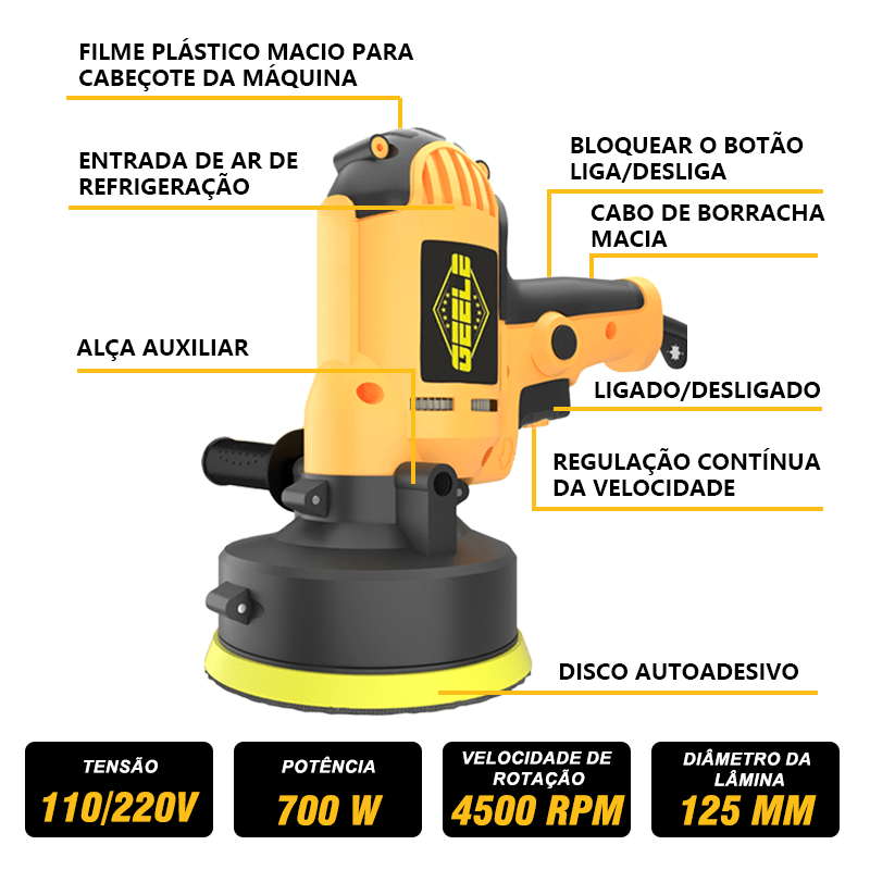 Polidora elétrica multifuncional de 700W, ideal para automóveis, madeira e metal.